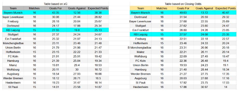 RB Leipzig tiene 2 victorias, 1 empate y 2 derrotas en los últimos 5 partidos. Empató 0-0 como visitante ante el Mönchengladbach, mientras que la contundente victoria 6-0 en casa frente al Eintracht Frankfurt fue la sexta de seis posibles como local esta temporada. RB Leipzig perdió 1-3 en los dos últimos partidos antes del parón invernal, como visitante ante el Union Berlin y en casa contra el Bayer Leverkusen. Ganó 2-0 en casa frente al Freiburg el miércoles. RB Leipzig no creó mucho contra el Mönchengladbach, pero tuvo un xG ligeramente superior, mientras que fue muy efectivo ante el Frankfurt. El partido contra el Bayer Leverkusen tuvo cifras de xG muy parejas, mientras que el encuentro ante el Union Berlin tuvo un xG total bajo, con un poco más a favor del Union Berlin. RB Leipzig presenta un xG muy alto en casa y ha dominado la mayoría de los partidos, mientras que su rendimiento como visitante es irregular.