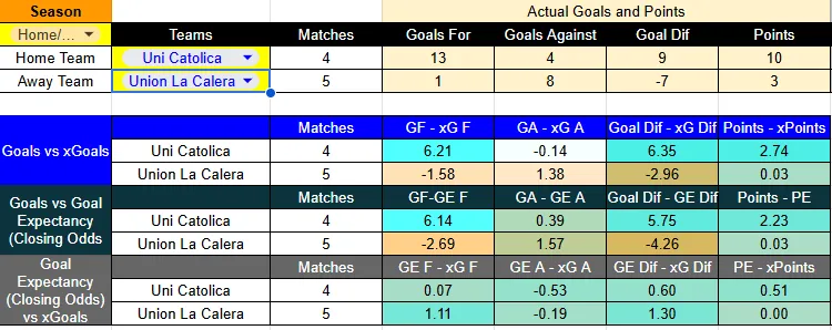 Estadísticas clave y contexto del mercado en Universidad Católica contra La Calera