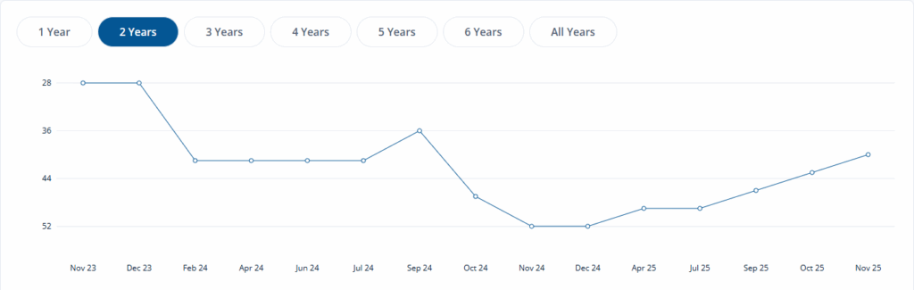 En sus últimos 2 años, ha mantenido una estabilidad en su clasificación FIFA, situándose entre la posición 95 (Julio 2024) y la 82 (Septiembre 2025). A día de hoy ocupa la posición 85.